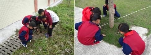 【室外生物认知活动—学生在认真观察生物】