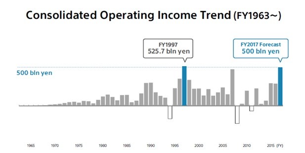 截至2017年3月31日的2016财年,业绩改善的主要原因之一是自电视业务开始,索尼消费电子业务的振兴。通过利用“强调差异,不求体量”战略经营业务,索尼重振了业务,并使其能够带来稳定的利润。