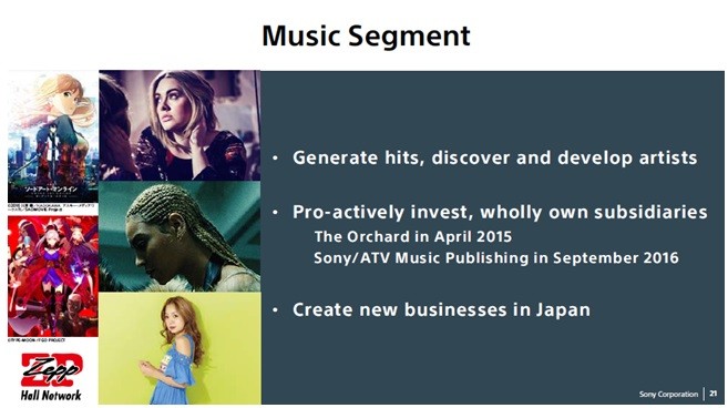 2017财年影视部门的盈利预期较中期计划中的原始目标大幅降低,但影视业务仍然是索尼的重要业务。在影视业务中,提升电影业务盈利能力措施的紧迫程度有所增加。由于电影业务模式的性质,需要时间才能得到改善的成果,但索尼致力于将其转变成为能够产生高水平利润的业务。
