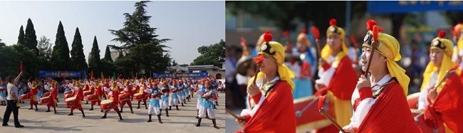 在当天的“梦想教室”启动仪式上,乔李小学的学生们呈献了精彩纷呈的开场表演,将晋南民间传统打击乐——威风锣鼓演绎得气势磅礴、威武雄壮。