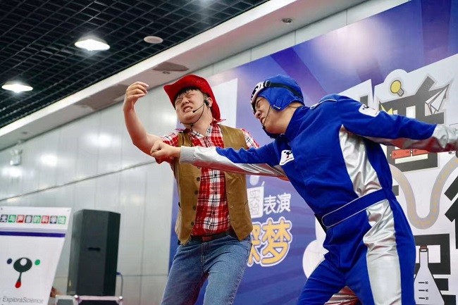 索尼探梦科技馆的“大型室内精品实验”在陕西科学技术馆火热上演。活动现场,“蓝色飞行员”和“红色牛仔”一出场便吸引了孩子们的注意力,他们不断进行“科学实验大比拼”,争夺“科学冠军”的称号,更是将活动的气氛推向高潮,孩子们兴致勃勃、赞叹连连。