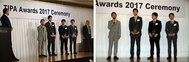 索尼公司获奖代表,左起:影像产品与解决方案公司数码影像本部产品设计1部萩原茂、影像产品与解决方案公司数码影像本部产品设计1部徳山陽人、影像产品与解决方案公司数码影像本部第3业务组濱口努、影像产品与解决方案公司数码影像本部软件技术1部井口和明
