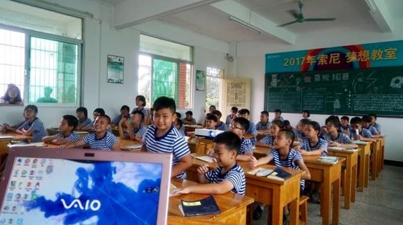 “梦想教室”是在共青团中央学校部的指导下,索尼公司自2013年启动的公益项目,为全国偏远贫困地区留守、流动儿童较为集中的学校提供兼具软硬件特色的“梦想教室”,示范教室包括修葺一新的教室、崭新的桌椅黑板、投影仪等硬件设备,以及科普实验课程等软件内容,同时组织索尼员工、各地大学生志愿者参加支教,为孩子们带去生动、有趣的科学课堂,使孩子在“梦想教室”中感受科学的神奇,激发他们对科学的好奇与兴趣,以“科技”助力,圆孩子们的梦想。