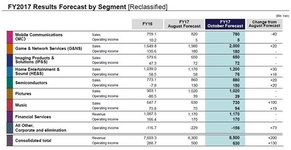 Q:八月到十月,索尼上调2017财年的营业利润预期,从5000亿日元调整至6300亿日元。这个数字真的可以实现吗?