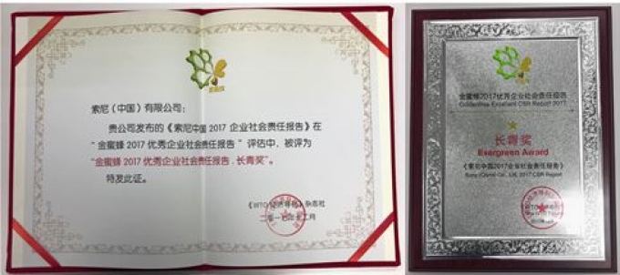 索尼中国荣获“金蜜蜂2017优秀企业社会责任报告 长青奖”