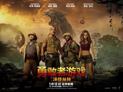 《勇敢者游戏——决战丛林》主要讲述了性格迥异的四人,因命运纠葛,共同打破次元壁,经历一场考验勇气与智慧的冒险故事。影片于2018年1月12日在国内上映。