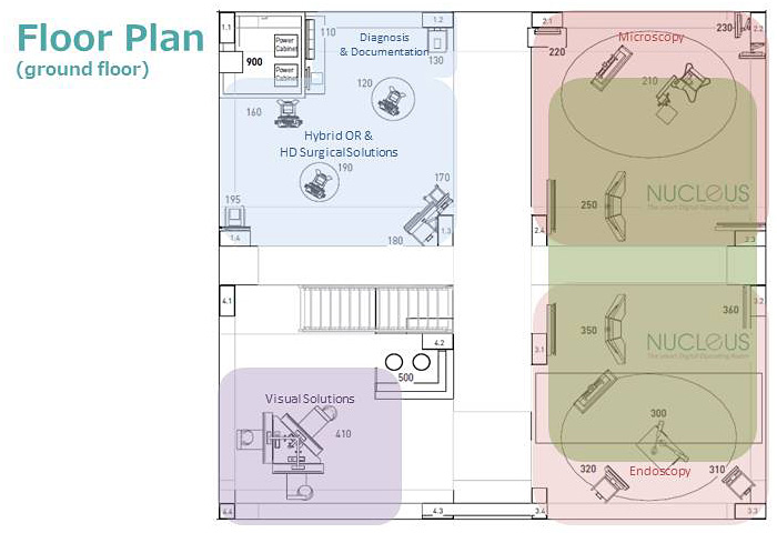 一层分为以下六个主要区域,用来展示根据医疗环境下的工作流程定制的产品和解决方案。