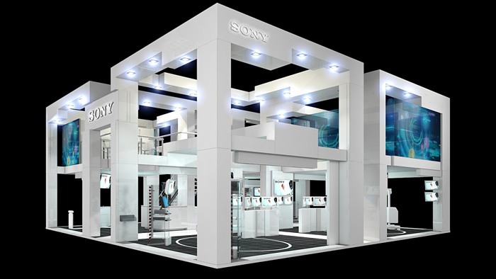 展台设计与去年相似。一层向公众开放,展出新产品和现有产品。二层用来举行商务会谈,向重要客户展示我们的尖端科技。