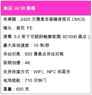 这款电池续航可达710次快门的拍摄续航,比A7 II的350次快门续航实现重大提升