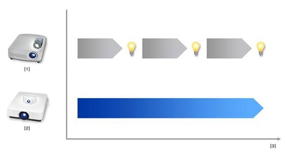 [1] 传统灯泡光源 [2] 索尼激光光源 [3]使用时间