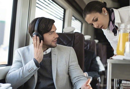 用手掌捂住右耳罩,将激活“快速提醒”模式,就可以让你快速清楚地听到周围环境声,同时音乐音量自动降低。无需摘下耳机,就可与乘务员简单对话或收听火车播报通知,这是非常理想的方式。