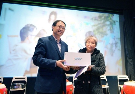 馆长张维代表索尼探梦向康纳洲提供Koov教育编程机器人套件
