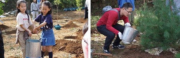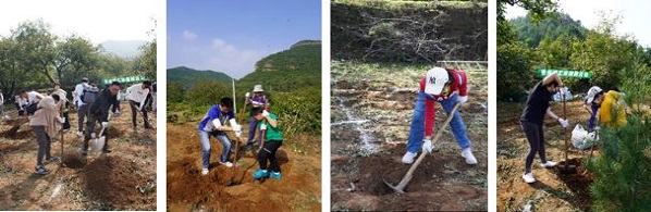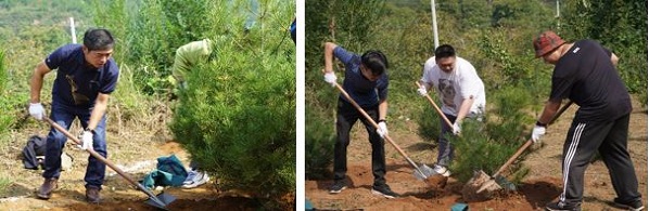 在专业技术人员的指导下,索尼志愿者们很快分好区域,挥锹铲土,搬运树苗。小朋友们也不甘示弱,挖坑接水,抬水灌溉,一个个变成了小泥猴,半天的辛苦劳作后,100棵白皮松,栓皮栎和五角枫树苗已纷纷安好了家,静待长大为“青山”做贡献。志愿者们也成就感满满,纷纷和自己的劳动成果合影留念。
