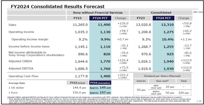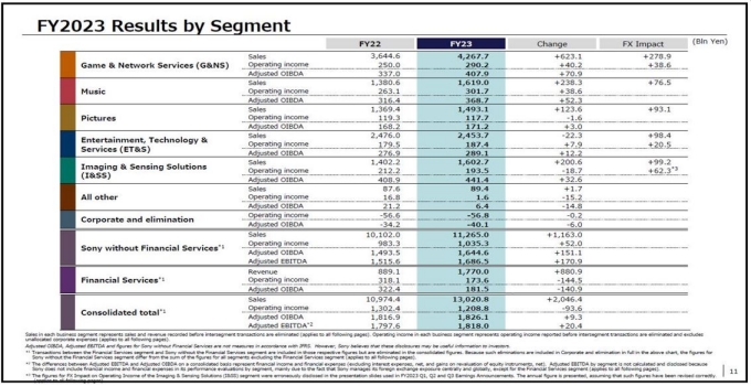 (日本,东京)—— 索尼集团公司(下称:索尼)今日公布2023财年(2023年4月1日——2024年3月31日)整体业绩数字,如下: