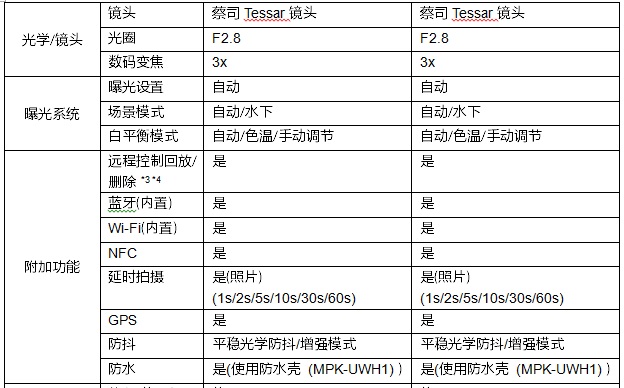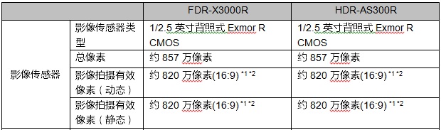 索尼4K酷拍摄像机FDR-X3000R及高清酷拍摄像机HDR-AS300R主要参数