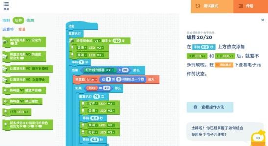 “进阶教室”是为了在家中也能从零基础开始学习编程而设计的自主课程,包含“创意编程入门”和“创意拼搭入门”两个课程。知识点安排由浅入深,并以各种有趣的示例为引导。在创意编程入门中,通过在各单元中了解编程功能块以及电子元件的使用方法等过程,学习机器人编程方法。在创意拼搭入门中,可以了解积木模块的种类、学习稳定重心,掌握有趣的动作的不同表现方法。让儿童在完成一个个任务的过程中循序渐进掌握机器人拼搭和编程知识。