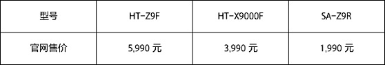 附录:索尼回音壁HT-Z9F、HT-X9000F及SA-Z9R新品价格说明