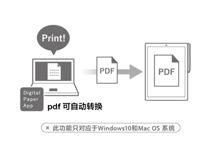用电脑编辑文件之后,使用者可以通过『Digital Paper App』,将文件通过电脑的打印选项快速传输到电子纸上。通过此方式,用户可将Word、Excel等文件转换成PDF文件,并传输到电子纸中进行审校、批注等工作,无需再使用纸张打印,推动实现无纸化办公。