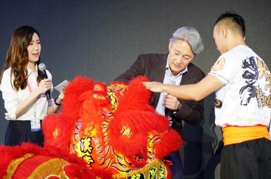 活动现场平井一夫先生给舞狮点睛