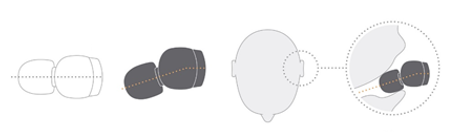相比左侧直道式耳塞,索尼WI-1000XM2耳机采用倾斜式耳塞设计佩戴更服帖(示意图)