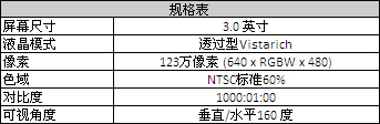 三英寸123万像素Full VGA 液晶显示屏