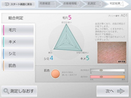 一般而言,皮肤分析技术的一个重要方面是同时具备检测可见光容易达到的表层皮肤,以及只能通过近红外光达到的皮肤下层的能力。“SSKEP”可以同时优化控制多个波长的光源输出,及通过CMOS影像传感器实现的影像捕获处理过程,以实现皮肤表面上下方的高灵敏度摄影,从而使多样化和高度精确的皮肤分析成为可能。