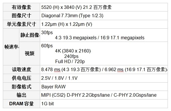 1. 业内首个配备了DRAM的3层堆叠式影像传感器,能够仅在1/120秒内高速读取1930万像素的图像