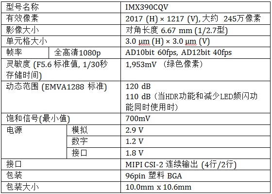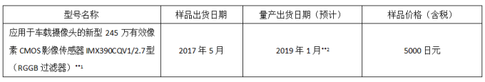 **1:为扩充产品线,除IMX390CQV(RGGB过滤器)外,将新增一款IMX390CPV(RGGB过滤器)(量产出货时间待定***1)。(2018年2月28日修订)