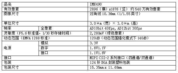 用于车载摄像头的IMX490 CMOS影像传感器