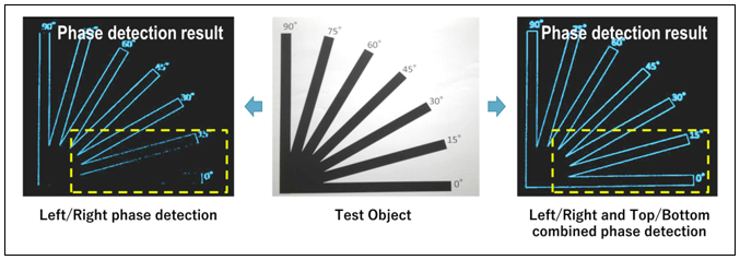 在传统的相位差检测方式中,由于像素被分割成左右来检测,因此不擅长于水平方向上纹理没有变化的被摄体(例如:由水平方向的边缘构成的被摄体等)。