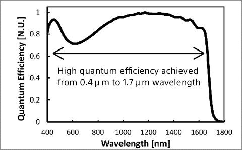 *1:构成受光型光电二极管的InGaAs层与构成读出电路的硅层通过铜-铜连接相连。这使得磷化铟(InP)层更薄,可见光得以穿透。